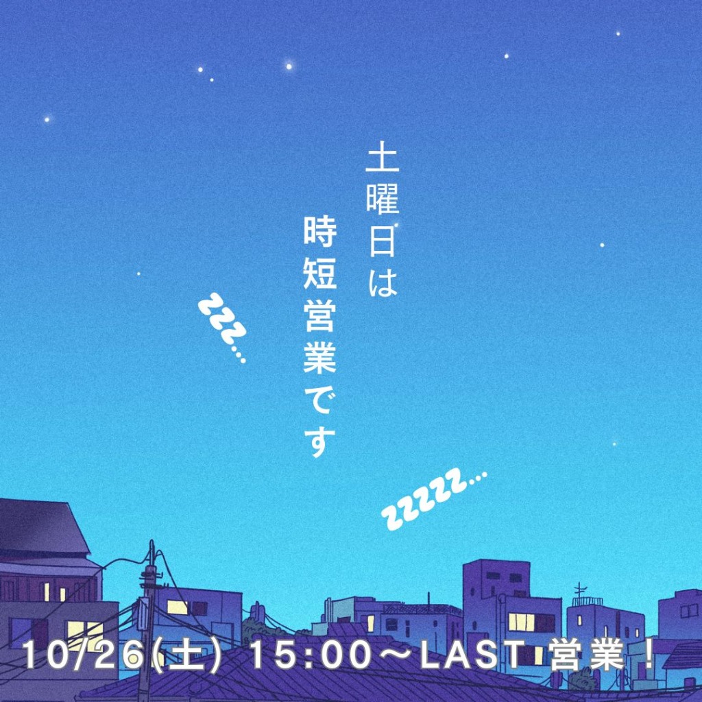 10/26(土)は【時短営業】です!