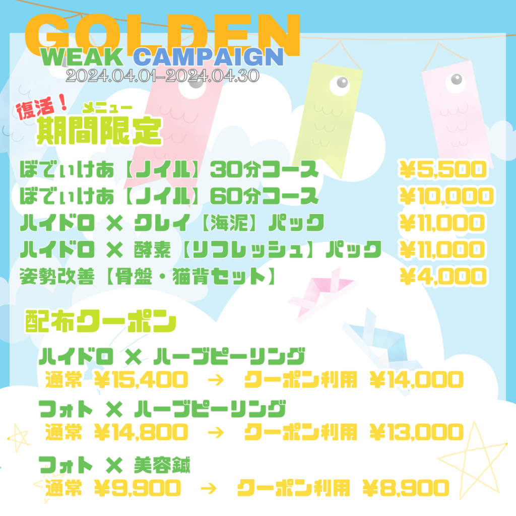 5月のクーポンは、GOLDEN WEAK CAMPAIGNです!
