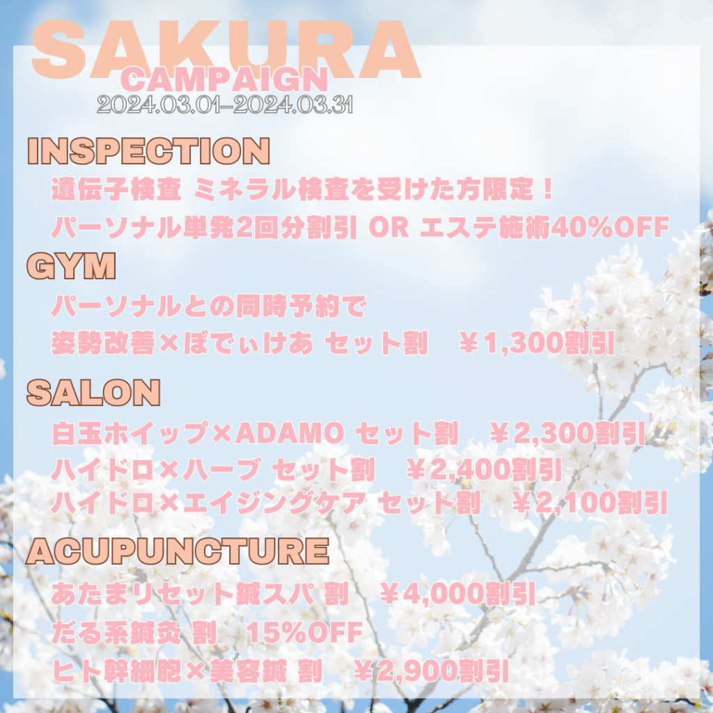 3月のクーポンは、SAKURA CAMPAIGNクーポンです!