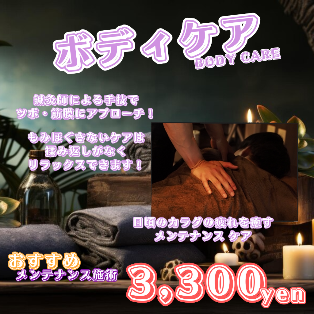 NARCISSUSでは、【ボディケア】の施術がお身体のメンテナンスにはおすすめです!