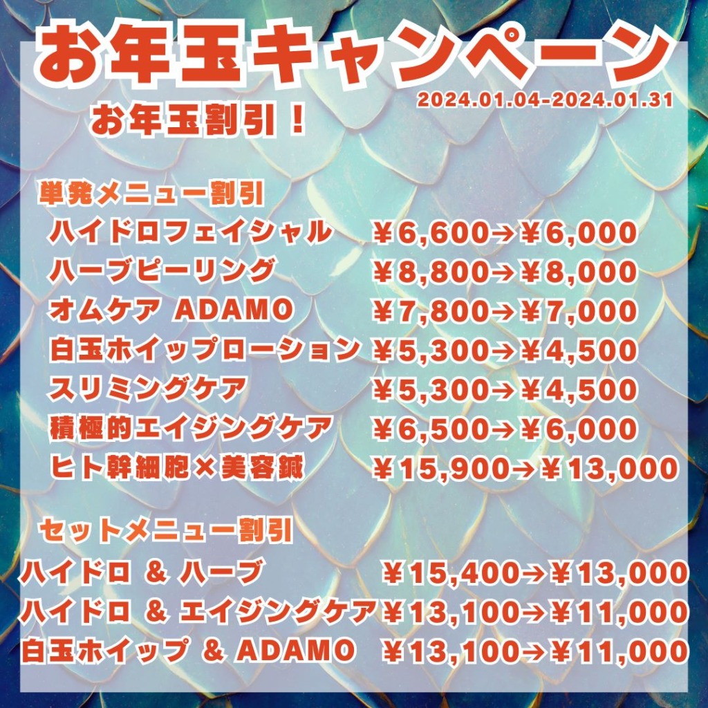 〇ハイドロフェイシャル&積極的エイジングケア ¥13,100 ➔ ¥11,000