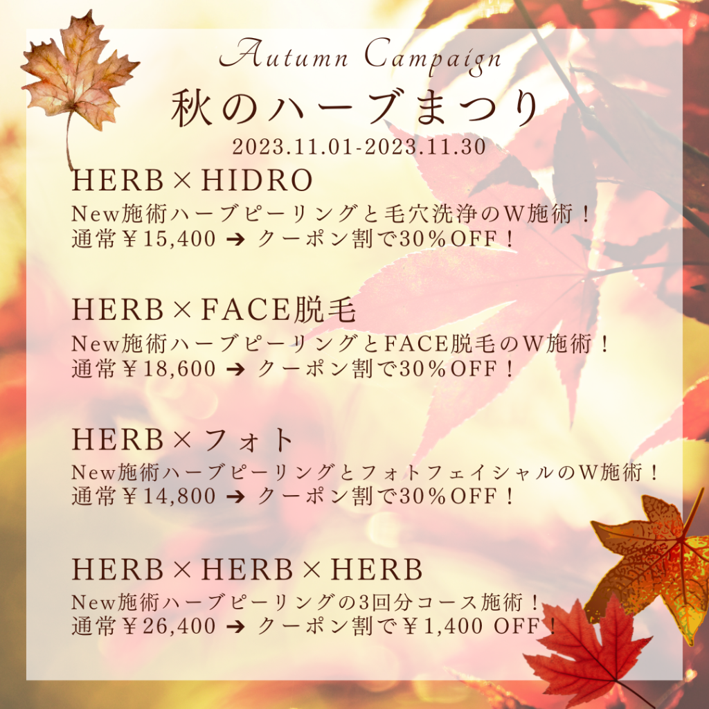 今回は お肌が乾燥しやすいこの時期におすすめ【New】施術のハーブピーリング 特集のクーポンを配布!