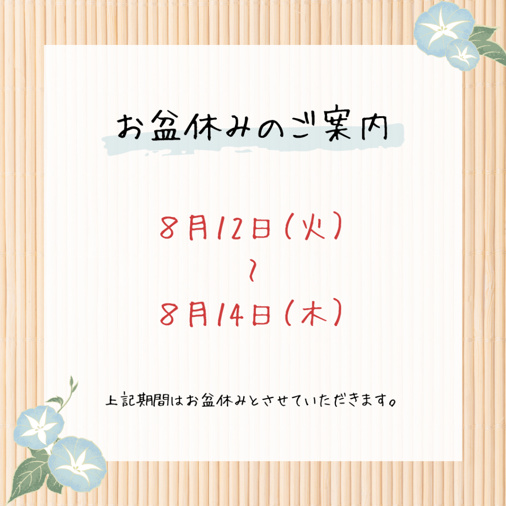8月【お盆期間の営業のお知らせ】