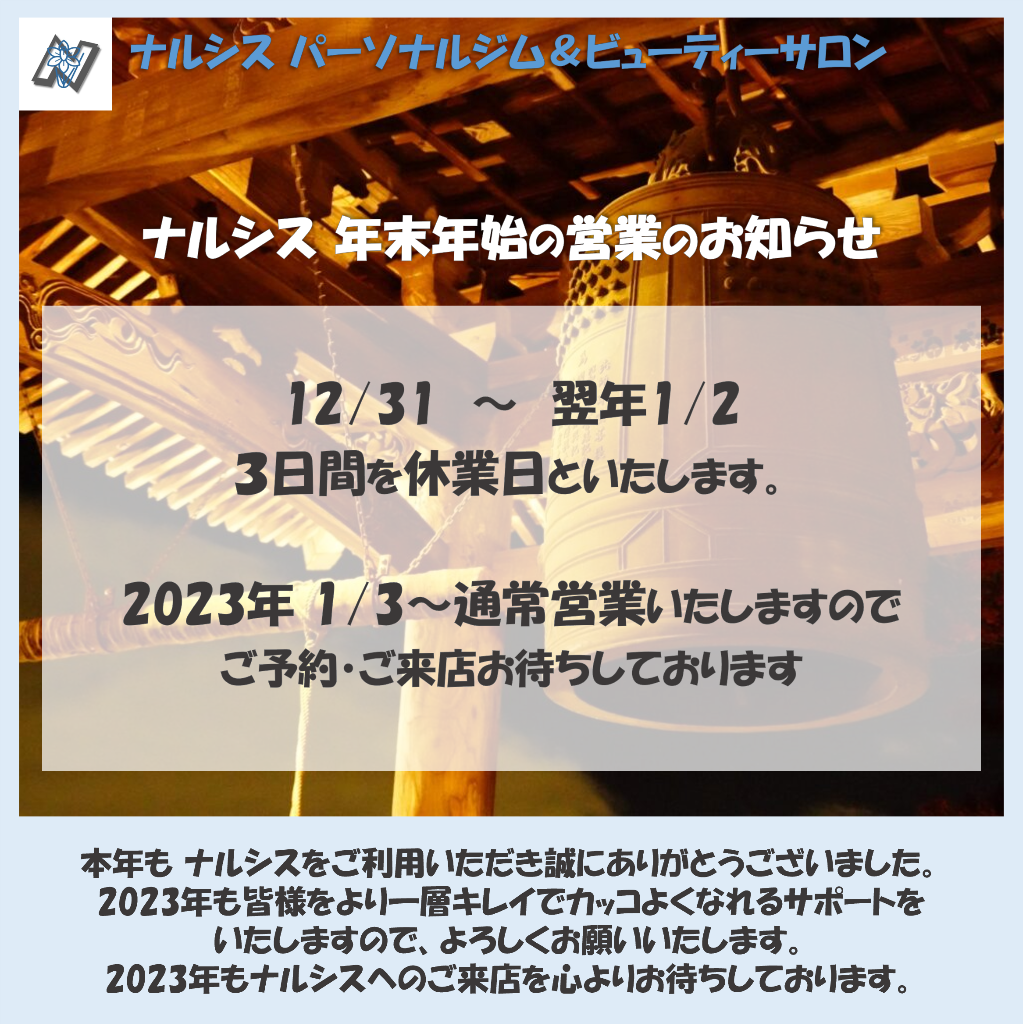 ナルシスの年末年始の営業日についてのお知らせをいたします。
