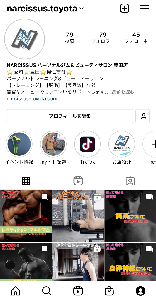 ナルシスは、豊田市にある男性専門のパーソナルジムとエステサロンのお店です