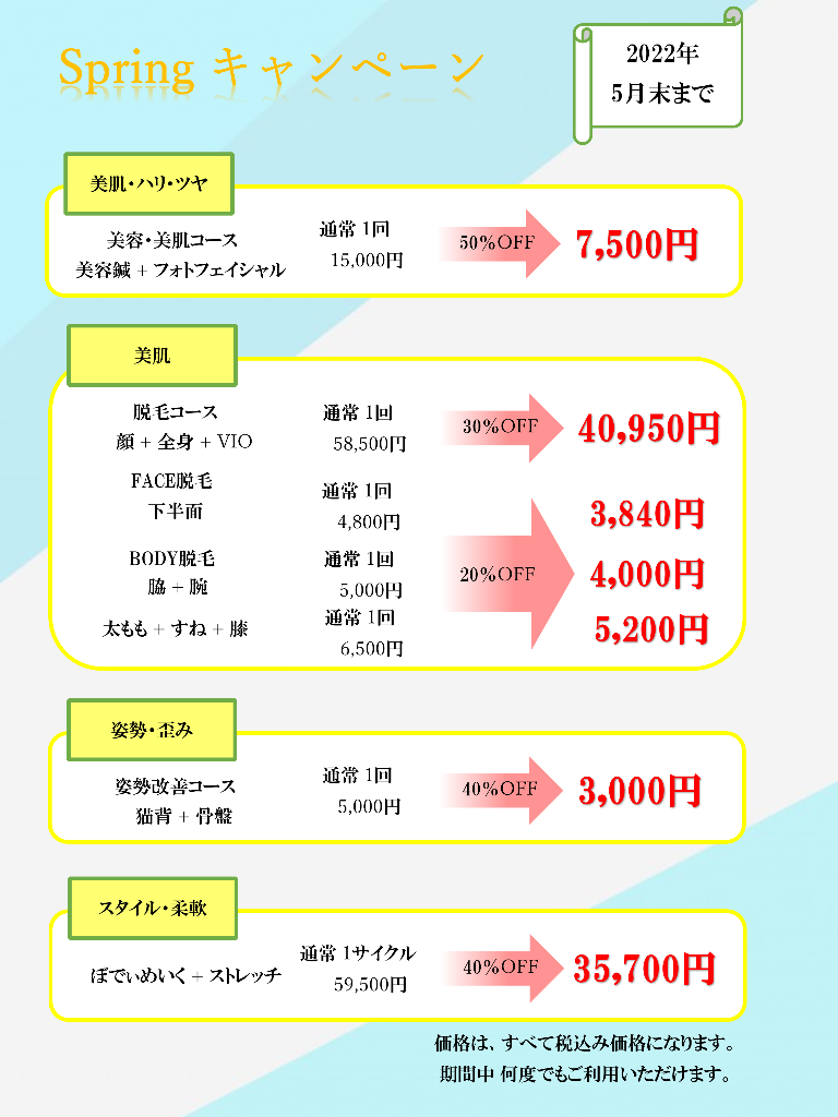 ぜひ、この機会に気になる施術がございましたら お試しください。